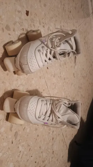 Patines quad polivalentes ideales para iniciarse en el patinaje o para uso ocasional. Muy cómodos, con diseño tipo zapatilla deportiva y estilo vintage. Talla EU 36 Muy buen estado, usados solo en 3 ocasiones. Precio original en decathlon 49.99 **Características técnicas:** * Bota de PU sintético * Freno de poliuretano (no deja marcas) * Chasis y trucks de PP de alto impacto * Ruedas de PU inyectado * Cumplen la norma europea de seguridad EN 13899