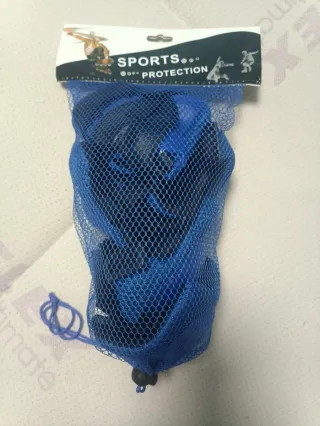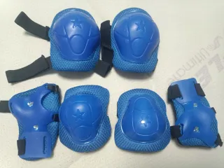 Set de protecciones para patinaje infantil. - Color azul. - Incluye rodilleras,coderas y protección para las manos - Vienen en una bolsa de malla con cordón para su fácil transporte.
