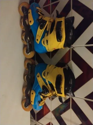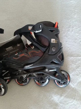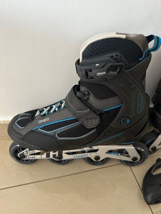 Par de patines en línea Oxelo en color negro con detalles en azul. Incluyen un accesorio adicional y tornillería. - Diseño deportivo. - Cierre de velcro y hebilla. - Ruedas con marca Oxelo. vendo patines como nuevo utilizados dos veces. con bolsa de transporte. los compre en decatlon 80€ tengo ticket. tailla 44