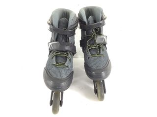 Patines en línea Oxelo de Decathlon, talla 32/35. Diseñados para patinaje recreativo y aprendizaje. - Color gris y negro. - Cierre de velcro y hebilla. - Ruedas de 76 mm.