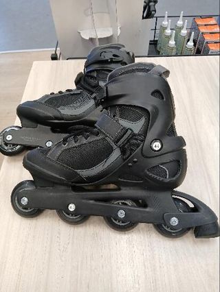 Patines en línea de color negro, talla 43. Perfectos para desplazarse o practicar deporte. - Cierre con cordones y velcro. - Ruedas de poliuretano.