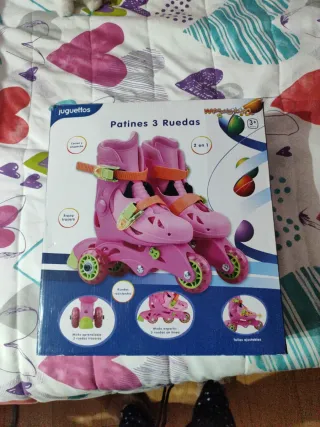 Patines Juguettos de 3 ruedas con opción 2 en 1. - Cuentan con freno trasero. - Tallas ajustables. - Modo aprendizaje con 2 ruedas traseras. - Modo experto con 3 ruedas en línea Regalo protecciones