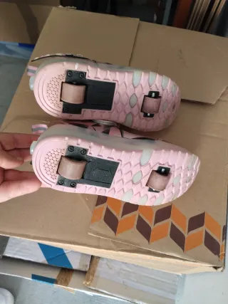 Patines cuatro ruedas,bota, fucsia,el freno derecho tiene desgaste