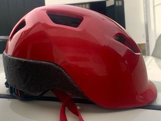Lote de dos cascos infantiles para bicicleta y patin de Decathlon. Talla S (51-56 cm). El rojo esta en perfecto estado, el verde tiene algun roce, comompuede verse en la foto.