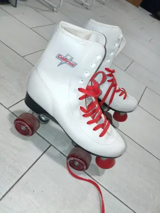 En perfecto estado. Usados un par de veces. Patines de la marca California en color blanco y talla 38. Cuentan con cordones rojos. - Diseño clásico de bota alta. - Ruedas rojas. - Logo de California en el lateral.