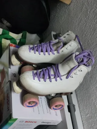 Se venden patines Bellati Violetta talla 43 con planchas Komplex Silver Plus 170. Lleva puestas unas ruedas Dragon para parquet pero incluyo en el precio las ruedas Roll Line para cemento (las grises) Tienen un par de usos los patines, las botas me costaron 280€ y las planchas 240€. Fueron comprados en la tienda totpati en barcelona, incluye la mochila de dicha tienda de regalo