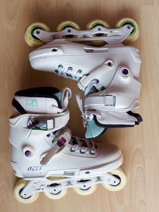 Patines agresivos NEXT de Miriam Fatmi en talla 41/42. Diseñados para patinaje urbano y street. - Bota blanca Undercover 80mm.