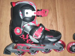 Patines en línea Oxelo de color rosa, ideales para iniciación. - Talla ajustable de 28 a 30. - Ruedas de 70mm. - Cierre de velcro y hebilla. - Botín interior acolchado.