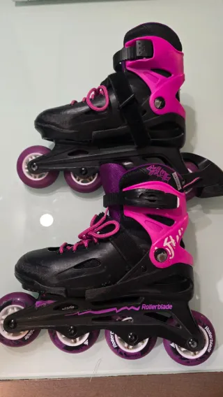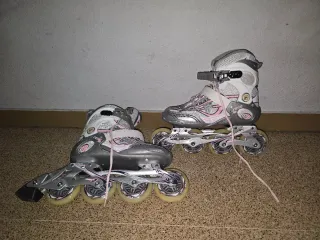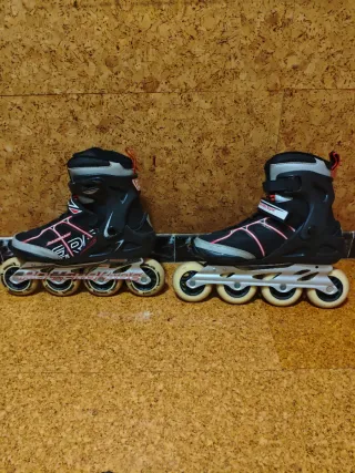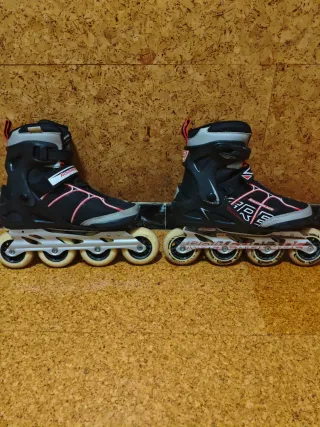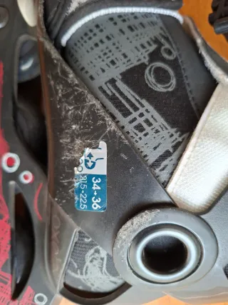 TALLA 40.5 ( yo en airmax uso casi un 42 y me vienen bien) - botin limpio siempre usado con calcetines. -muy cómodos - Bota alta con cierre de velcro y hebilla. - Ruedas de 80mm de serie SE CAMBIARON A 84mm PARA MAS COMODIDAD Y SUAVIDAD. COJINETES CON POCO USO. -Guia de aluminio.