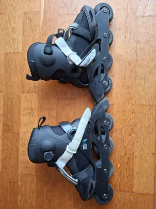 Se venden patines en línea de color negro. - Diseño moderno y funcional. - Ruedas de alta calidad para un deslizamiento suave. - Cierres ajustables para mayor seguridad y comodidad.