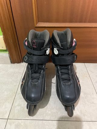 Patines en línea de color negro, talla 38. Marca Oxelo, comprados en decathlon. Perfectos para iniciarse en el patinaje. Usados dos veces (literalmente). Están perfectos y como si no sé usarán nunca. Los compré para probar y vi que no era lo mío.