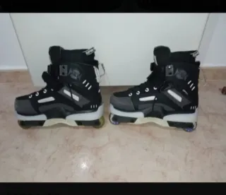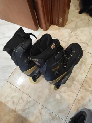 Patines agresivos USD AEON PIANOWSKI. Negociable - Botín MYFIT pro model - Color negro y dorado. - Cierre con cordones y hebillas. - Ruedas de poliuretano original - ruedas centrales dureza 100 para grindar