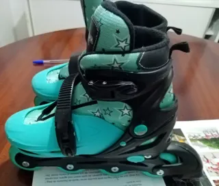 Patines en línea con diseño moderno y llamativo, ideales para iniciarse en el patinaje. - Cierre de velcro y cordones para un ajuste seguro. - Ruedas de poliuretano para un deslizamiento suave. - Freno trasero para mayor control. - Diseño ajustable para adaptarse al crecimiento del pie.