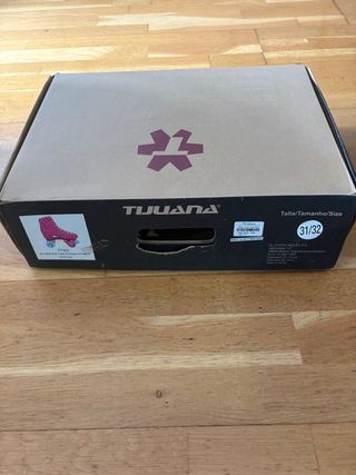 Caja de patines en línea marca Tijuana. - Talla 31/32. - Color rosa con diseño. - Incluye imagen de los patines.