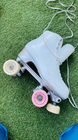 Se venden patines talla 36 en color blanco. Ideales para patinaje artístico o de competición. Una temporada de uso. En tienda 369 euros. Los vendo a menos de la mitad, 150 euros. Bota modelo Iris Micro Plancha Silver, ruedas Azurra 150 euros - Incluyo cordones de colores y juego de llave.