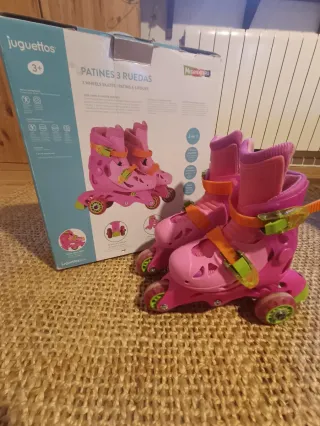 Patines de 3 ruedas en color rosa, ideales para iniciarse en el patinaje. Son ajustables para adaptarse al crecimiento. - Sistema de 3 ruedas para mayor estabilidad. - Cierre de velcro y hebilla para un ajuste seguro. - Talla ajustable para adaptarse a diferentes edades (25-29)