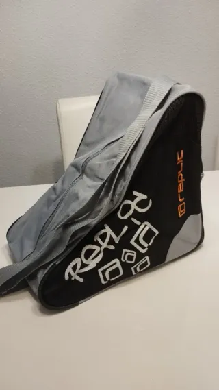 Bolso diseñado para transportar patines. Tiene un diseño moderno y práctico. - Color negro y gris... - Logo Orepnic en naranja... - Estampado blanco en forma de rombos.