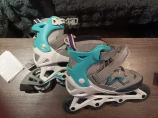 Patines de la marca decathlon, son los que se estiran para aumentar el tamaño 35-38. Lleva en freno de talon (desmontado) ideal para aprender y ocio esporádico.