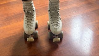 Se venden patines blancos de cuero, ideales para iniciarse en el patinaje. - Diseño clásico y elegante. - Cierre con cordones para un ajuste seguro. - Ruedas de alta calidad para un deslizamiento suave. tallas 38