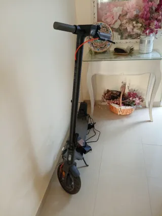 Patín eléctrico de la marca Xiaomi en color negro. Ideal para desplazamientos urbanos. - Manillar con controles. - Rueda delantera y trasera. - Pata de apoyo. - Cargador incluido.
