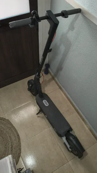 Patín eléctrico Navee en color negro. Patin de la marca navee con super poco uso, funciona perfectamente, tiene algunas marcas del uso que no afectan al funcionamiento, tiene tres velocidades, luces, ruedas mas gruesas y resistentes que otros patines convencionales, falta la pata por un pequeño golpe que tuvo, pero se puede arreglar sin problema y la bateria dura bastante tiene una autonomía de unos 60 kilometros, se regala casco para el patín que esta nuevo sin estrenar y el cargador. - Manillar con pantalla digital. - Freno de mano. - Luz delantera.