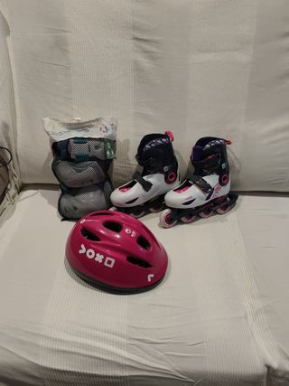Patines en línea Oxelo tallas 32-35y casco rosa.