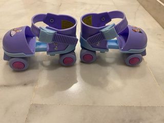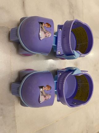 Patines ajustables con diseño de Frozen. - Color morado. - Ilustraciones de Elsa y Anna. - Cierre ajustable.