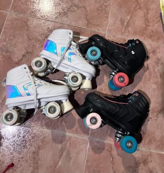 Patines 4 ruedas decathlon blanco negros 36. Excelente estado. Muy poco uso. Los compre al final del extraescolar y ya decidieron que no querian mas. Talla 36: decathlon. Valor 40-50 eu el par. 20 el par. Los dos por 30. Envio solo por inpost..