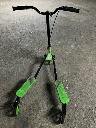 Patín scooter tipo Trikke en excelente estado, casi sin uso. Ideal para paseos y diversión. - Diseño moderno en color negro. - Plataformas con estampado de camuflaje. - Ruedas sin desgastes.