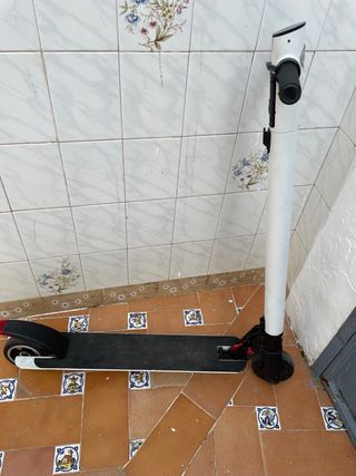 Patín eléctrico Xiaomi en color gris, con certificación DGT. - Diseño moderno y funcional. - Ruedas de buen tamaño para un desplazamiento suave. - Freno trasero visible. solo venta en persona en Huelva