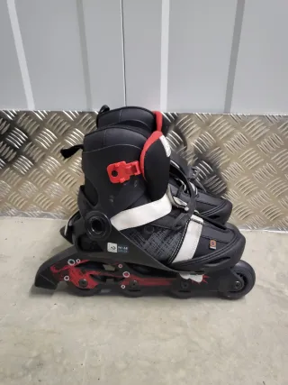 Se venden patines Oxelo en buen estado, ideales para iniciarse. Incluyen bolsa de transporte. - Talla: 34-36 (215-225 mm). - Color: Negro, rojo y gris. - Cierre con velcro y hebilla. - Ruedas de 65 mm. - Bolsa de transporte negra.