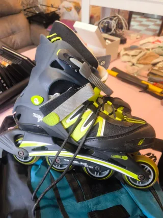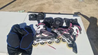 Set de patines en línea en muy buen estado y con poco uso, ideal para disfrutar de paseos. - Incluye patines en línea. - Incluye protecciones para rodillas y codos, muñecas caderas y gluteos.