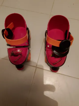 Patines extensibles con diseño de Cars. - Talla ajustable de 28 a 33. - Color rosa y naranja. - Cierre de velcro y hebilla.