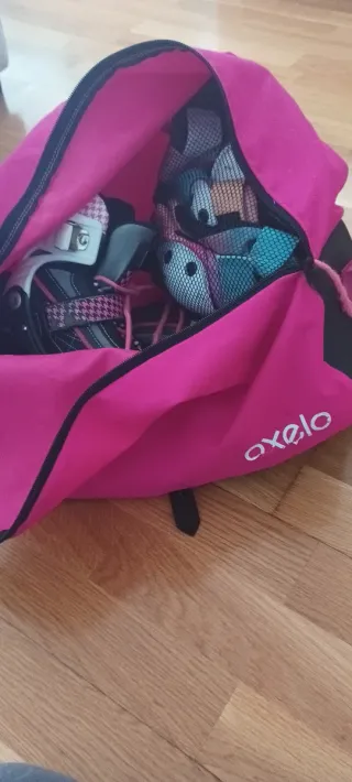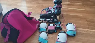 Set de patines en línea son extendibles, van del talle 37 al 43. Incluye rodilleras y coderas para mayor seguridad. Se usaron muy poco. - Patines en línea. - Rodilleras. - Coderas. - funda/bolso rosa