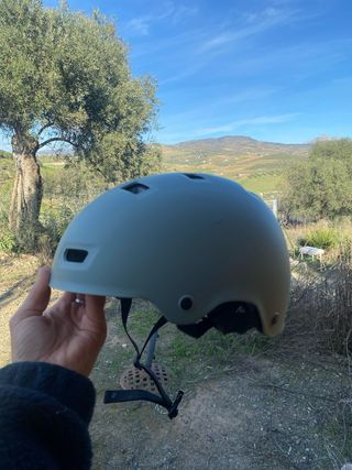 Casco de protección para patines, monopatines o bicicletas. rodilleras y coderas. Todas las tallas son pequeñas (SMALL). solo usado una vez ! - Color : verde (Sage) - Cierre ajustable. - Ventilación. - Correas de sujeción.