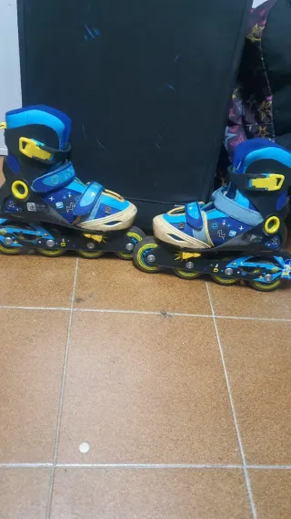 - Patines en Línea de niño marca Decathlon "Oxelo Play 5". - Ruedas de iniciación - Talla ajustable: si el niño/a tiene una talla entre la 30 de 32 le quedará bien sin tener que ajustarse, pero si continúa creciendo no hay problema porque se pueden ajustar hasta una talla aproximada de 35.