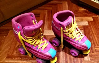 Prácticamente nuevos, se han usado 5 veces como mucho. Talla 40. - Color negro con detalles en rosa. - Cierre de velcro y hebilla para un ajuste seguro. - Ruedas resistentes para un deslizamiento suave.