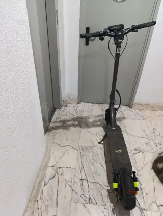 Se vende patín eléctrico SmartGyro modelo K2. - Color gris oscuro. - Diseño moderno y funcional. - Logo 'K2' visible en la base. - Es de Junio de 2023 y se a cargado 5 veces