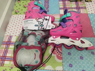 Patines infantiles en color rosa, ideales para iniciarse en el patinaje. - Diseño ajustable para adaptarse al crecimiento. - Cierre de velcro y hebilla para mayor seguridad. - Ruedas resistentes para un deslizamiento suave.
