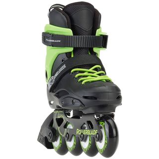 Patines en línea Rollerblade en color negro con detalles en amarillo y gris. Cuentan con un sistema de cierre de velcro y hebilla para un ajuste seguro. - Talla ajustable del 35 al 38 - Ruedas de poliuretano. - Bota acolchada para mayor comodidad. - Marco resistente Regalo bolsa transporte y casco para niño