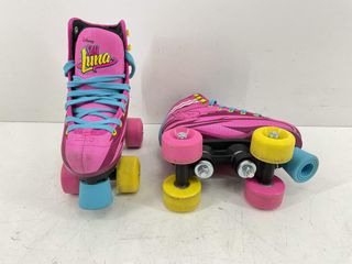 Patines de la popular serie Soy Luna, en perfecto estado. Los ha usado mi hija un solo día. Le compré estos y otros patines en línea y ella prefirió ponerse éstos de 4 ruedas para aprender porque los patines de línea le daba miedo y no sé atrevía , pero con estos patines aprendió a patinar en un día. Estos patines de cuatro ruedas son ideales para aprender a patinar a mi hija le dio mucha seguridad . Están como nuevos, un sólo día de uso, me costaron 69,95 en la pág web solopatin.com - Diseño inspirado en la serie. - Cordones amarillos. - Ruedas rosas.
