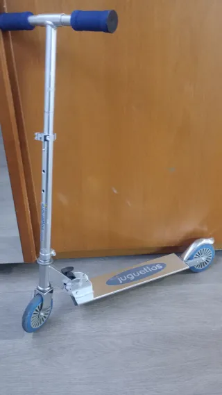Este patín de aluminio es perfecto para desplazarse de forma divertida y ágil. Su diseño plegable facilita su transporte y almacenamiento. - Fabricado en aluminio. - Puños de goma azul. - Ruedas de color azul.
