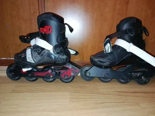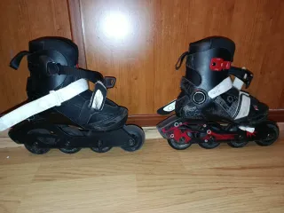 Se venden patines en línea para niños, ideales para iniciarse en el patinaje. No estoy muy seguro de la talla en la rtiqueta pone de 34 a 36 - Diseño en color negro con detalles en rojo y blanco. - Cierre con velcro y hebilla para un ajuste seguro. - Ruedas de goma resistentes.