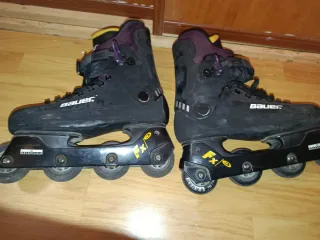 Se venden patines Bauer en color negro. Diseñados para ofrecer un buen rendimiento. - Cierre de velcro y cordones. - Ruedas Bauer. - Talla 42-44 - Precio negociable