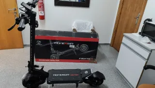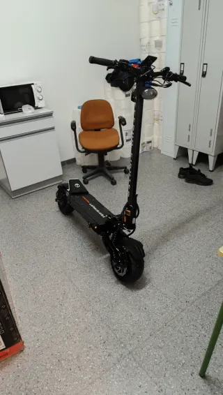 Patín eléctrico Teverun Fighter 11 Plus en color negro. - Diseño robusto y moderno. - Pocos kilómetros, muy cuidado. Suspensión regulable en 15 puntos de rebote, pantalla tft a color, APP oficial para modificación de luces y demás. Ruedas 11 pulgadas, 60v 35am. Extras de regalo; 2 Manillares negro y blano. Blosa de transporte transporte. 2 llaves NFC. 2 mando limitador delimitado de velocidad. Casco Smart con luz e intermitentes. 2 juegos de ruedas off road. Caja original Teverun.
