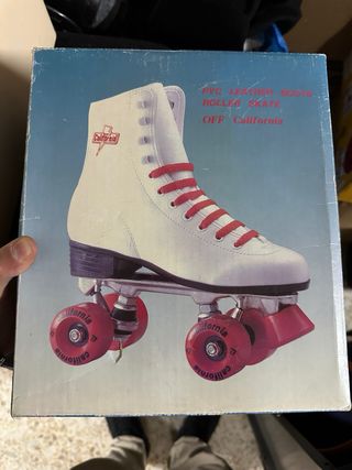 Patin de 4 ruedas de la marca California. - Color blanco. - Cordones azul marino. - Ruedas azules.