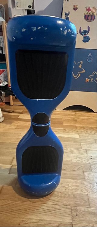 Este patín eléctrico tiene un diseño moderno y llamativo en color azul, el patín esta un poco rallado y no tiene cargador - Ruedas con banda de rodadura. - Cuerpo de plástico resistente.