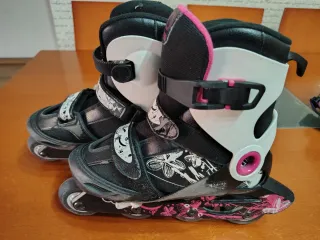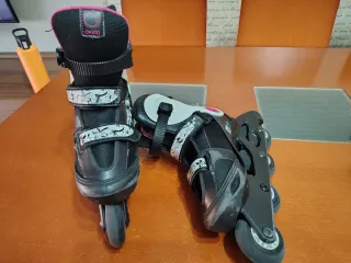 📦 Qué incluye Patines en línea Oxelo Play 3, talla ajustable 34-36, 3 ruedas por pie, freno trasero, cierres de clip funcionales, artículo para niño/a que empieza a patinar para estabilidad y sujeción del tobillo. ⚠️ Estado Muy buen estado, usados muy poco. 🚚 Condiciones de venta No hago envíos.