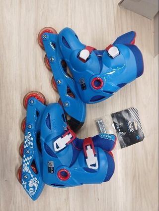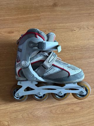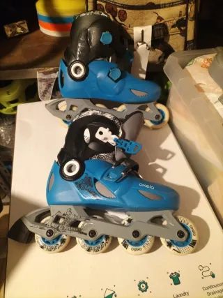 Patines en línea para niños.. Marca: Oxelo. Talla: 34-36. Se puede adaptar la talla. Presenta roces en los laterales por el uso.