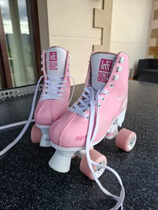 Patines de estilo clásico en color rosa, perfectos para iniciarse en el patinaje. - Diseño alto tipo bota. - Cordones blancos. - Ruedas de color rosa. - Talla de la 31 a la 34. Regulables
